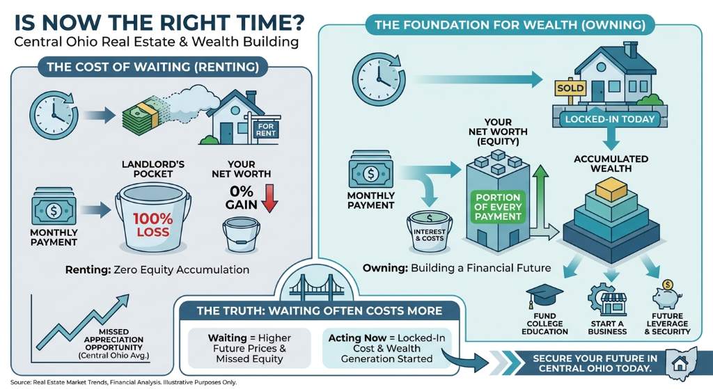 Many prospective buyers wonder if now is the right time to enter the Central Ohio real estate market. The truth is that waiting often costs more in the long run. By purchasing a home today, you lock in your foundation for wealth generation.