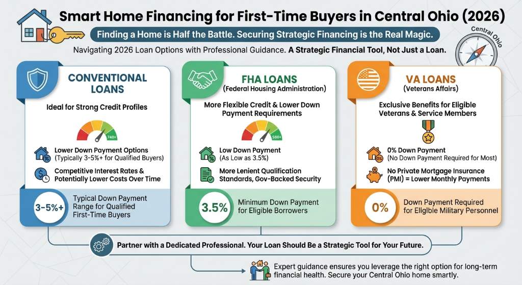 Finding the right home is only half the battle; securing the best financing is where the real magic happens. In 2026, there are several smart loan options designed specifically to help first-time buyers in Central Ohio get their foot in the door. Working with a dedicated professional like Joseph Sauk ensures you are not just getting a loan, but a strategic financial tool.