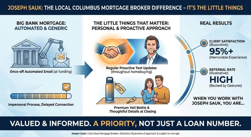 These small gestures are backed by real results. When you work with Joseph Sauk, you are not just getting a mortgage. You are gaining a financial advocate who understands the Columbus real estate market inside and out. Our clients consistently share testimonials praising the seamless process, noting how our flexibility allowed them to close early and secure their dream homes without the typical stress associated with big corporate lenders. By maintaining a client-first philosophy, we ensure that every question is answered promptly and every milestone is celebrated.